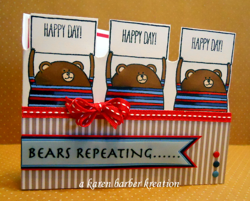 June 25, 2015Yes, dear Karen, I read every post on your blog, which come to me via email. And my comments usually show up on SCS, but here's one for your blog: I *LOVE* these cute little bears, and your "Bears Repeating" greeting is so clever and adorable! Please keep blogging!