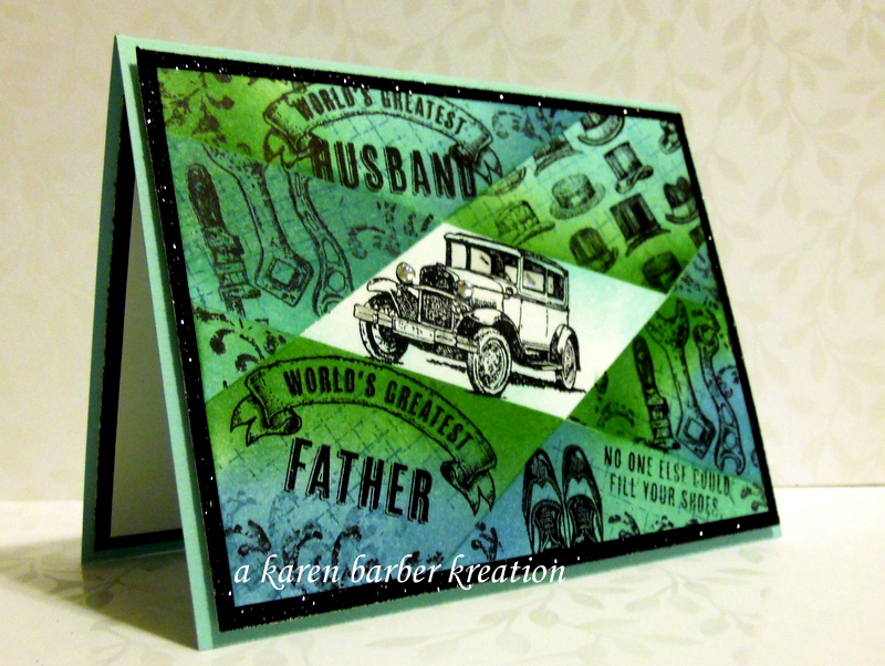 The SUO challenge this week is SUMMER CELEBRATIONS, and I made a Father’s Day card for my husband. I used the old retiform technique where you use post it notes and make a grid around a focal point and then make a collage by masking off each section of the grid and sponging. I love this technique. And my husband truly is the best dad and husband I know! I love when you love someone enough to really mean the gushy things that cards say. 🙂 🙂 🙂 Happy Tuesday everyone!! Until next time, Karen