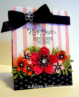 The SUO challenge this week is BIRTHDAYS! Aren’t birthday’s wonderful?? And we always need BIRTHDAY CARDS!! I chose to post this one which I actually made for the SCS color challenge a couple of weeks ago, BECAUSE……I had the weekend from H-E double hockey sticks!! I was supposed to go to Eastern Ohio this past weekend to hold a LARGE stamping event with some of my all time favorite stampers – but alas, I awoke on Friday morning at 2 am to spend about a half an hour before the great white throne, sick as a DOG for just about a half an hour and then off to bed I went, and when I woke up on Friday, I THOUGHT I was fine. So I went about my day, not sure why I had to kind of choke my breakfast down, which is always cottage cheese and fruit, (I like feel totally disappointed if I eat anything else) and my coffee didn’t taste all that great either, but I was just thinking I was a little queezy but I’ll be fine….so on the day went, last minute packing, last minute cleaning….and at lunch time I was like, hmmmmm…..somehow I just can’t eat my usual salad today, so I had a couple pieces of melba toast with peanut butter, trying to keep it bland. My favorite scent in my Scentsy burner (blueberry cheesecake) was making me feel GREEN, and I kept thinking man, how come I usually love this smell and I HATE IT RIGHT NOW….but plug on, get ready, lots’ to do, Keith will be home, gotta leave by 3:30, pack your outfit, don’t forget the order forms, remember to pick up some pens, did you pack your boots? hey, stop, no, really, i said stop, lay down, before you fall down. I went in and found my bed, which eventually led to a panic flight to the bathroom, where I spent the next couple of hours, and I won’t get graphic here, but you can figure it out, right? I was coming down with the nasty flu…..yes my friends, the NASTY one. I have not been sick like that since I was in my 20’s!! In between episodes I text my dear friend Gloria, and say, Heads’ up my friend, I am feeling rather SICK, and she texts me back and says, Immodium helps,,,,,and I chuckled, No, really, I can’t swallow anything for the next few hours or I know where it will end up……I know TMI, but when I say I just KNEW in my heart of hearts that I wasn’t going anywhere for the next several hours and maybe we could HOPE I could get up and leave at 2am or something…..but as the day wore on Gloria said, no, Karen, it’s okay, go to bed and we will cancel – the LAST thing I wanted to do was feel like I could possibly push on through and then find out I passed it to 50 friends…….I HAD TO GIVE IT UP AND GO TO BED AND JUST WEAR OUT THE CARPET BETWEEN THE BED AND THE BATHROOM FOR THE REMAINDER OF FRIDAY. SO…..when I named this entry THANK GOD IT’S NOT FRIDAY I WASN’T EXAGGERATING!!!!! I AM SO GLAD IT’S MONDAY IT AIN’T EVEN FUNNY, and who says that???? SOMEONE WHO HAD THE FLU ALL WEEKEND THAT’S WHO!!!! Also complete with aches, chills, and a rash. YUP, a rash. SO PLEASE FORGIVE ME IF I DIDN’T MAKE A NEW BIRTHDAY CARD AND CHOSE TO POST THIS ONE FROM TWO WEEKS AGO, OKAY????? i am still so washed out that I went to bed and THEN remembered I needed to prepare this post so dragged myself out of bed, and here I am…..with my war story. Forgive me, I digress. Seriously time for this tired teddy bear to say goodnight and hit the hay. Gonna reschedule with my girls in Eastern Ohio, I think they love me anyway! 🙂 Happy Tuesday everyone, and THANK GOD IT’S NOT FRIDAY!!! Until next time, Karen
